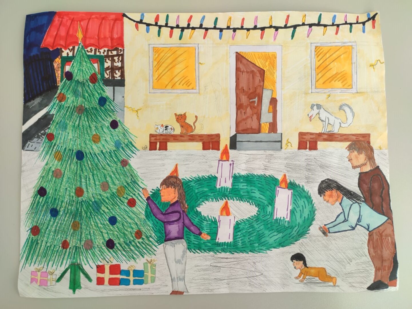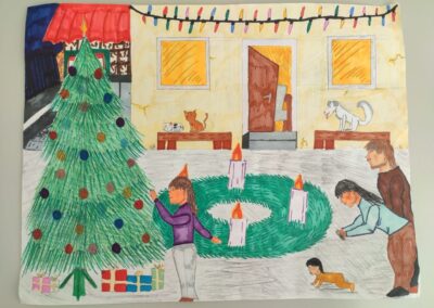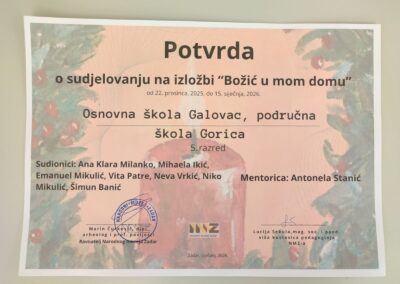 Na izložbi su postavljeni dječji radovi pristigli na natječaj „Božić u mom domu“. Radovi prikazuju božićne običaje u obitelji ili mjestu sudionika. Od pristiglih radova nakon dugog razmišljanja odabrani su sljedeći: